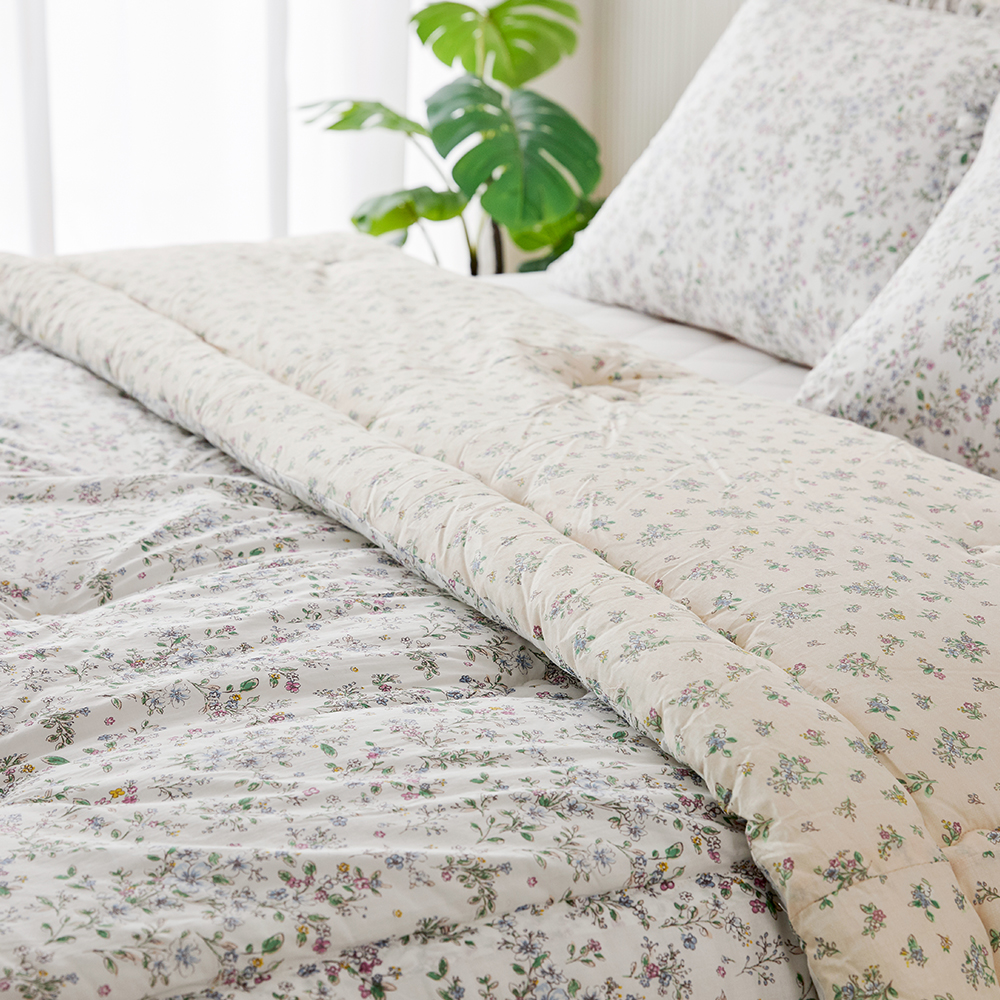 다른면 배색이 노란색이라 걱정했는데 생각보다 밝고 화사해서 다행이네요. 한겨울 두꺼운 이불은 아니지만 영하 5도쯤 쌀쌀한 공기는 커버되는 두께인 듯 하네요.