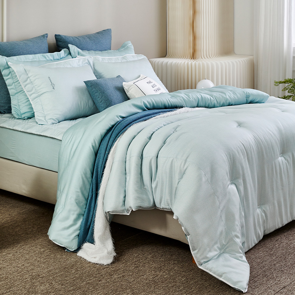 슈퍼싱글(SS) : 차렵S 1개, 패드SS 1개, 베개커버L 1개 / 퀸(Q) : 차렵Q 1개, 패드Q 1개, 베개커버L 2개 / 킹(K) : 차렵K 1개, 패드K 1개, 베개커버L 2개